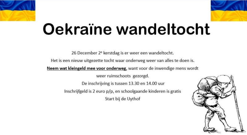 Op 26 december 2e kerstdag wordt er een Oekraine wandeltocht