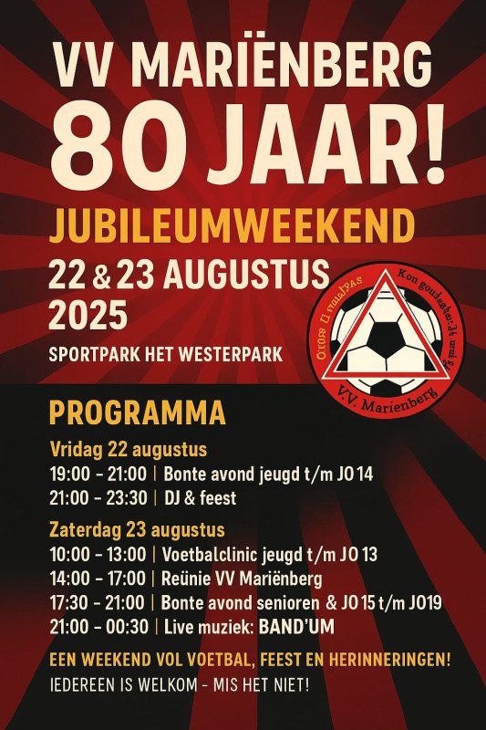 Feestweekend VVMariënberg ter ere van 80-jarig Jubileum
