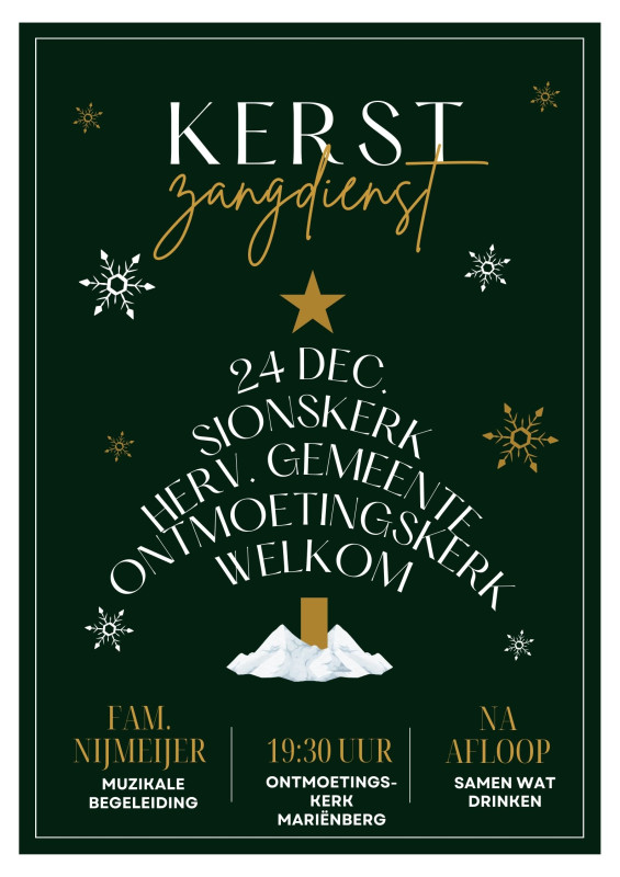 Kerstzangdienst op 24 december 2025 in de ontmoetingskerk te Mariënberg.