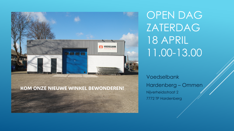 Zaterdag 18 april van 11:00 - 13:00 uur Open Dag van de voedselbank Hardenberg - Ommen.
