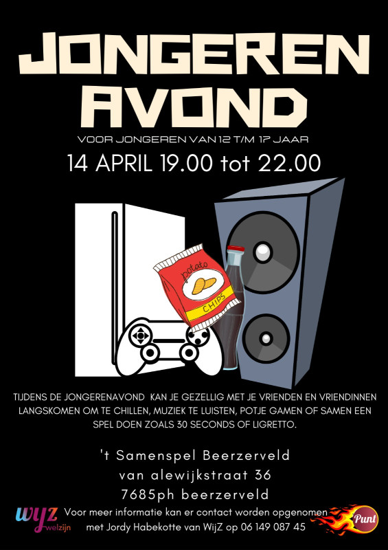 ideeën voor de jongerenavond in Beerzerveld, app dit dan door aan Jordy van