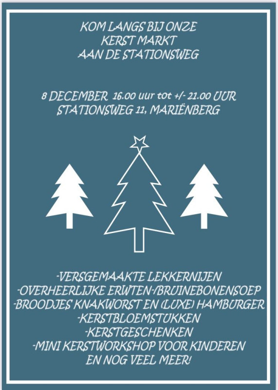Op 8 december 2023 aan de stationsweg 11 in Mariënberg wordt er een kerstmarkt gehouden van 16:00 tot ongeveer 21:00 uur.