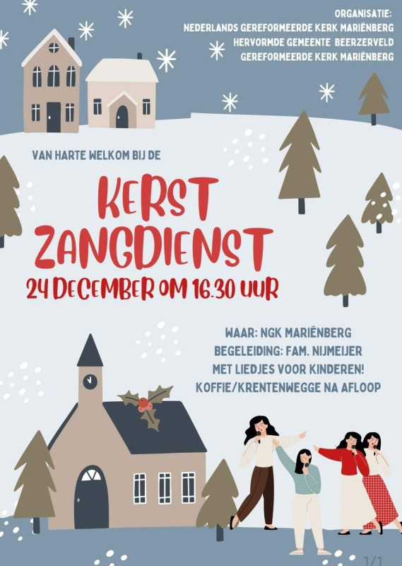 gezamenlijke kerken uit Mariënberg en Beerzerveld een kerstzangdienst in de