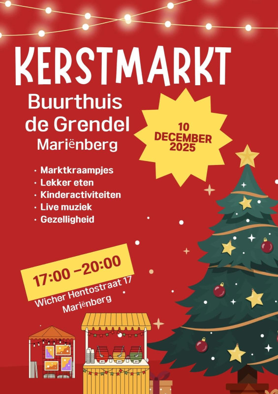 Buurthuis De Grendel houdt op 10 december een kerstmarkt van 17:00 - 20:00 uur.